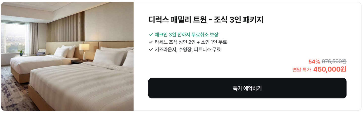 - 호캉스만이 목적이라면 룸온리 상품 또는 디럭스 패밀리 트윈