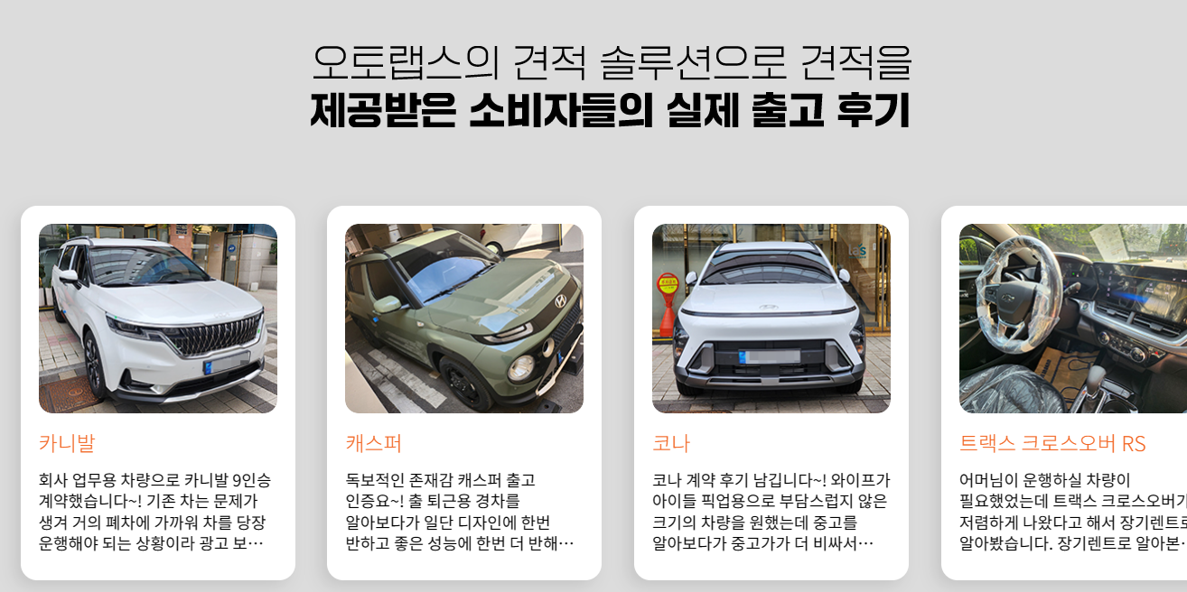 - 어떤 차량의 견적도 오토랩스의 매칭 솔루션으로 최적의 견적을 무료로 제공합니다.