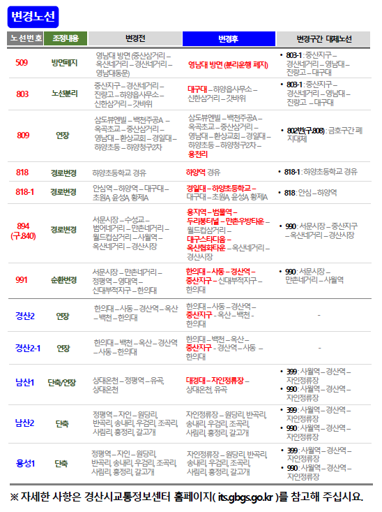 대구와 경산의 시내버스 노선 변경과 개편 내용에 대해 정리해 봤습니다.